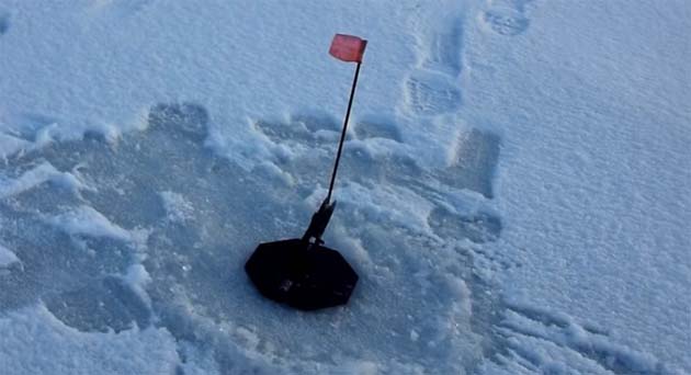 - Если жерлицы ставят на ночь, то лунки нужно присыпать снегом, что бы леска не примерзла льдом в воде.